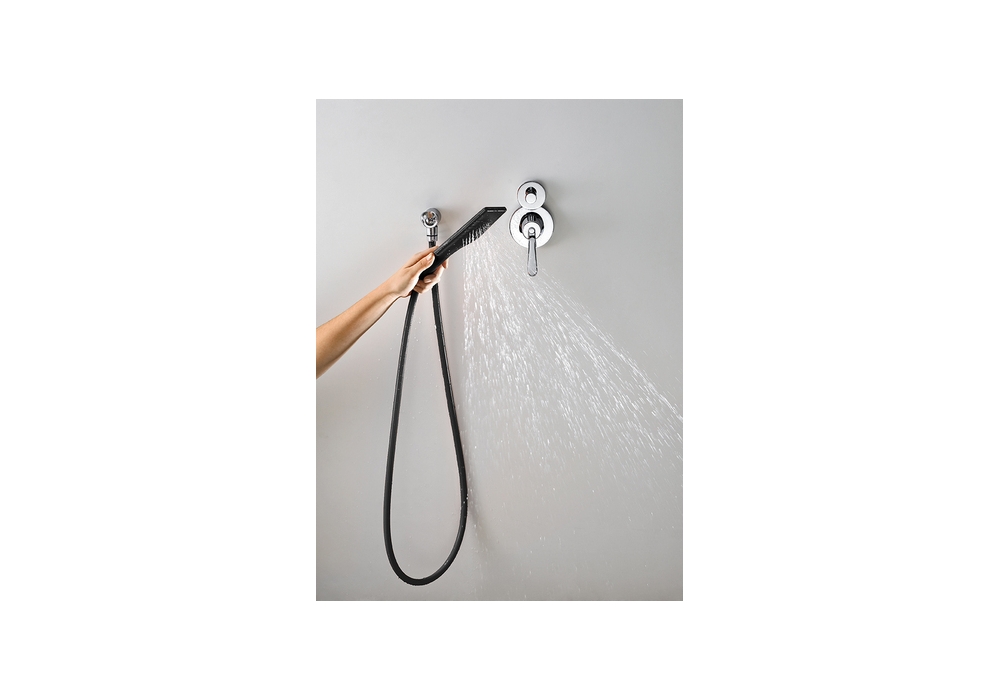 While in the cradle, a handheld showerhead operates just like a fixed shower head.